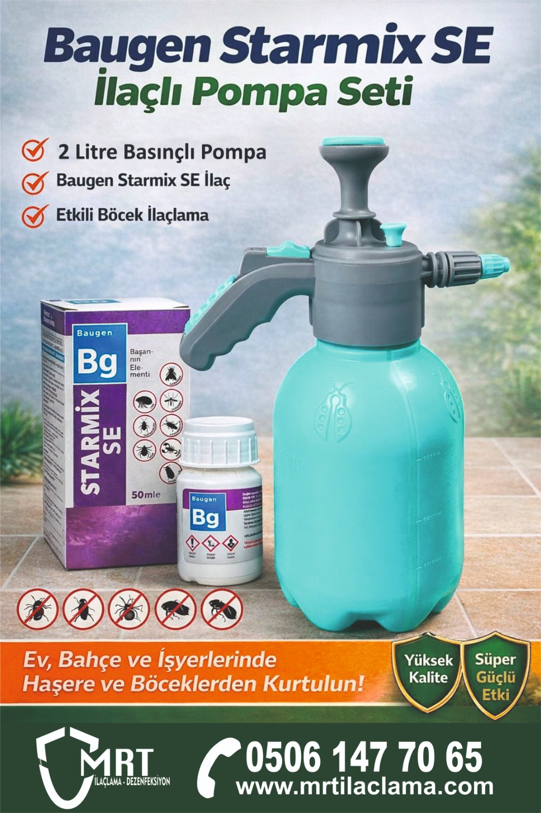 • İLAÇLAMA SETİ / Baugen Bg Haşere Öldürücü Starmix SE 50 ml+2lt Basınçlı İLAÇLAMA Pompası Akrep | Pire | Tahtakurusu | Karınca | Hamamböceği | Tüm Haşereler İçin Kullanılabilir (Kopya)